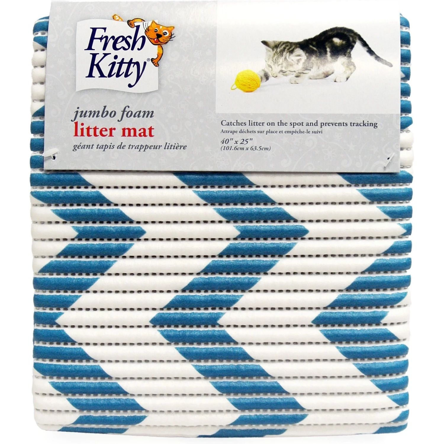 Put a fresh step in your kitty’s stride with the Fresh Kitty Jumbo Foam Chevron Cat Litter Mat. This stylish mat has a ribbed surface that catches any spilled litter from the litter box or your kitty’s paws to prevent it from being tracked around the house. Since it’s made with soft foam, it’s comfy and gentle on your cat’s sensitive paws. It’s large enough to cover more flooring area around the litter box for even more litter-trapping action, and you can even machine-wash it to keep it clean with no hassle.