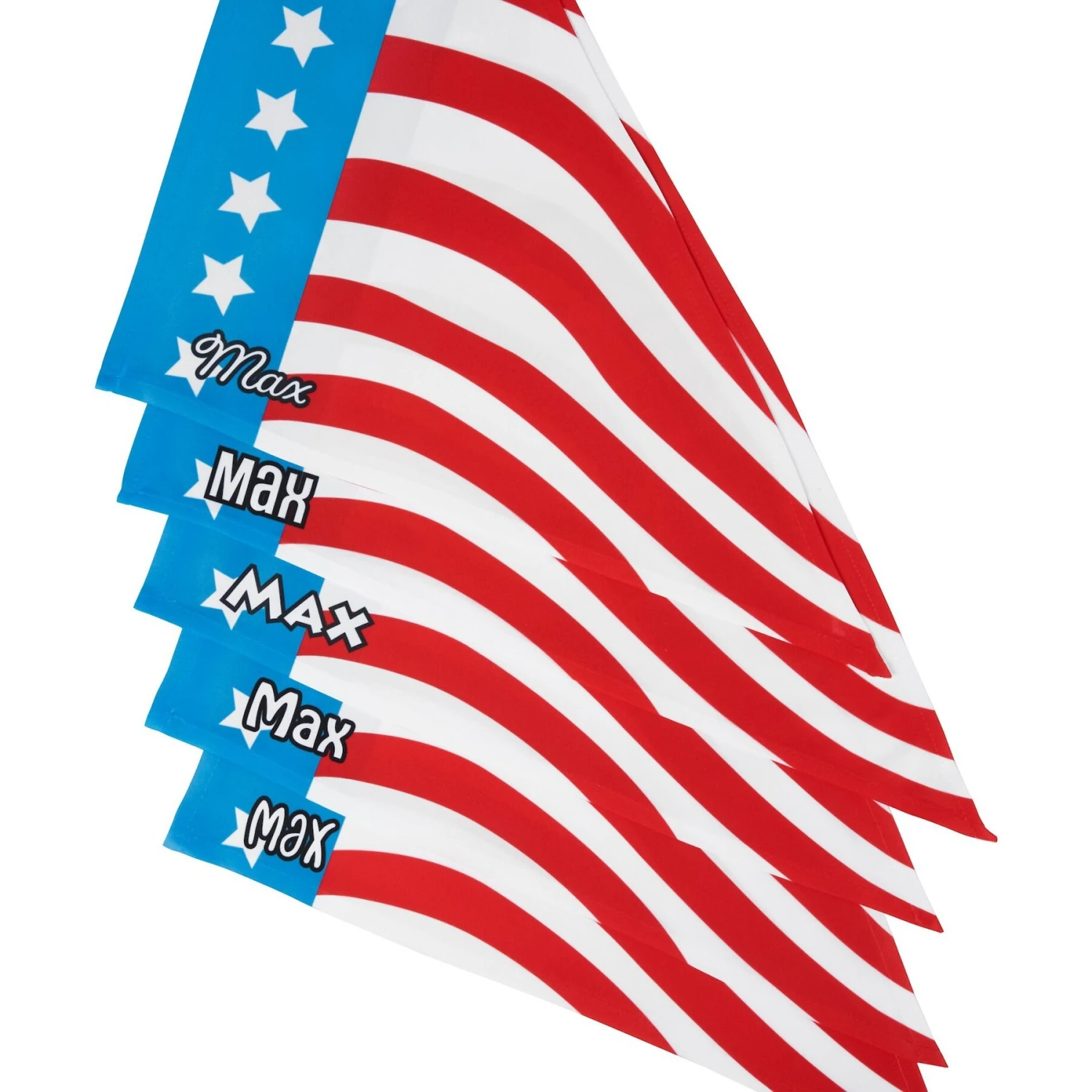 Personalize a bandana just for your pet! This classic Americana print bandana in red, white and blue is the perfect accessory for your pet’s spring and summer wardrobe. It has their name written all over it! Really, with space for up to 13 characters in five cool fonts, you’ll have plenty of room for their name and a little custom cuteness to make them the talk of the dog park. Plus, it’s available in multiple sizes, and it has a rollable design so you can easily make it fit your pet. Roll it to the right length, then tie it loosely around their neck. Just like that, boom—cute! Add a custom touch to their clothes with Frisco.
