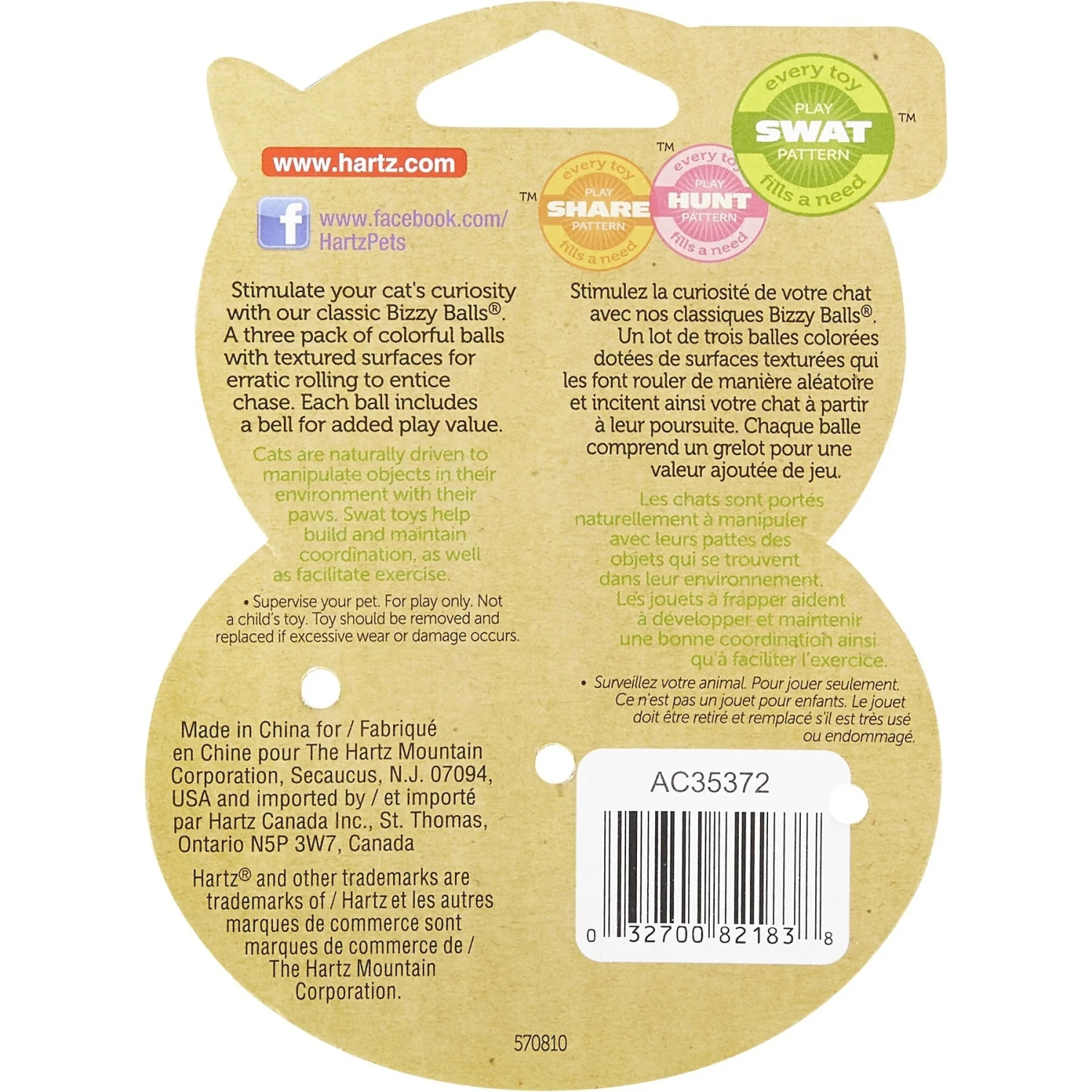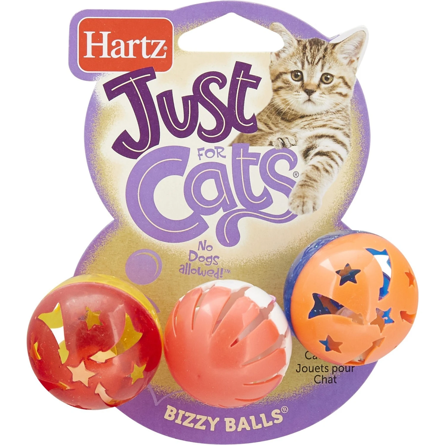 Stimulate your cat’s curiosity with the Hartz Just For Cats Bizzy Balls Cat Toy. These colorful ball toys feature a jingling bell to capture your kitty’s attention. The textured surface makes the balls roll erratically, adding an element of surprise to playtime! Exercise your cat’s natural instinct to explore with toys that stimulate their natural play needs. Bizzy Balls are great for multi-cat households and solo or interactive play.