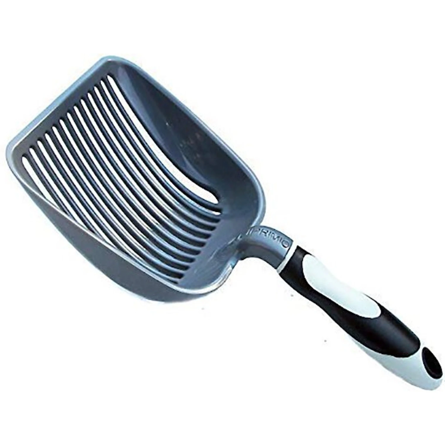 - Heavy-duty scooper keeps your feline fur-iend’s litter box fur-esh and clean!