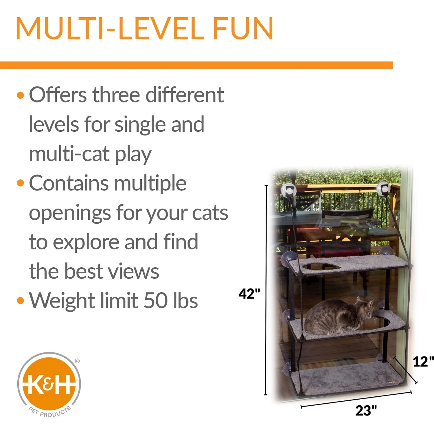 Good views and a comfortable hammock can be your cat’s with the K&H Pet Products EZ Mount Window Kitty Sill Triple Stack! This three-floor hammock has everything your feline friend could need. This kitty sill is built with industrial-strength suction cups to securely hold up your kitty as she watches people, stalks birds or just admires nature. When not in use, you can clean the covers in the washing machine and fold the hammocks up against the window to close the blinds. Give your purring pal a place to call her own with this fun and engaging window mount!