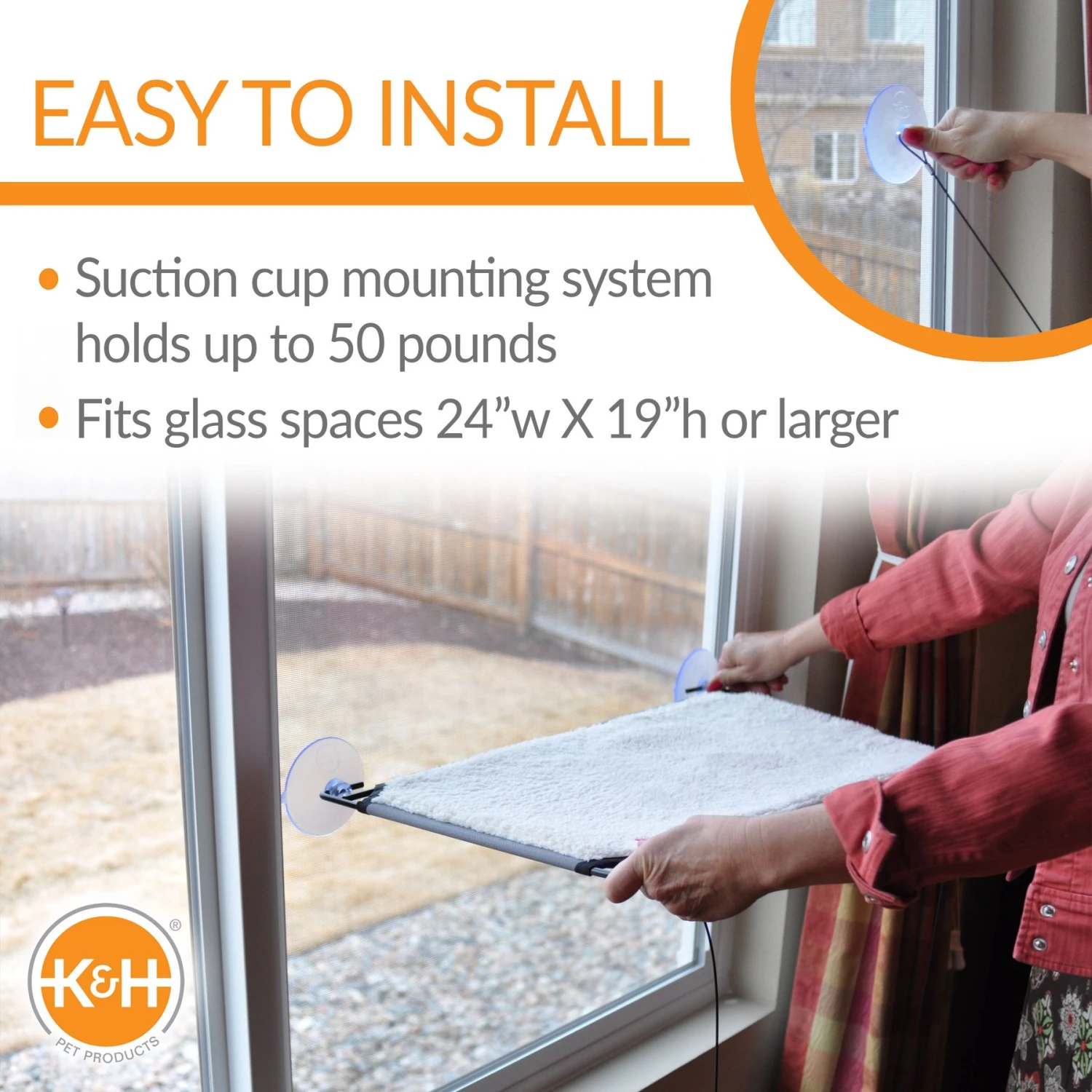 Mounting and suction cup maintenance: 1) Thoroughly clean your window, making sure the window is completely dry and free from residue. 2) Clean the suction cups with a mild detergent and rinse thoroughly. Dry suction cups completely. 3) Regularly clean your window and suction cups, monthly is recommended. HELPFUL HINT: Warm suction cups are easier to mount than cold. Try soaking the suction cups in hot water or leave them in the sun for a few minutes to help warm!; Remove the cover from the kitty sill. Machine wash cover only, separately. Mild detergents, no bleach. Cold water, gentle cycle. Air or line dry. Dry completely before reassembly.