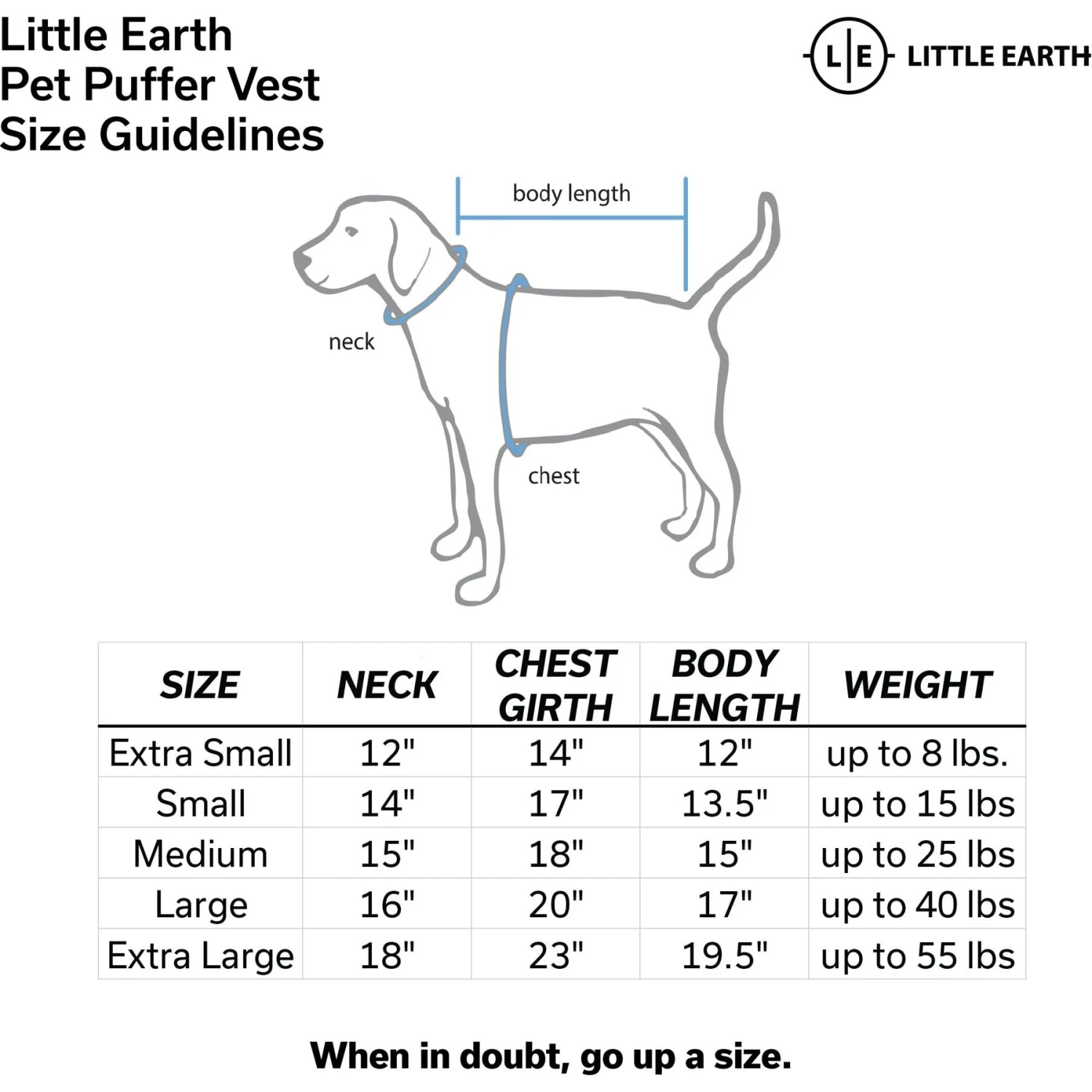 Remember to measure your pet for the paw-fect fit. Let your furry friend show off their team spirit with Littlearth NFL Washington Commanders Soft Fleece Line Dog & Cat Coat! Officially licensed by the NFL, this adorable puffer vest features a large, full-color team logo of the Washington Commanders on the back. The hook and loop fastener helps keep the vest secure. It has a water-resistant shell, reflective bands, and a soft, fleece lining, so your pal can stay safe, warm, and dry during the big game. This 100% polyester vest can be hand washed and air dried. With a variety of sizes to choose from, you can make sure your fur baby is ready for gameday!