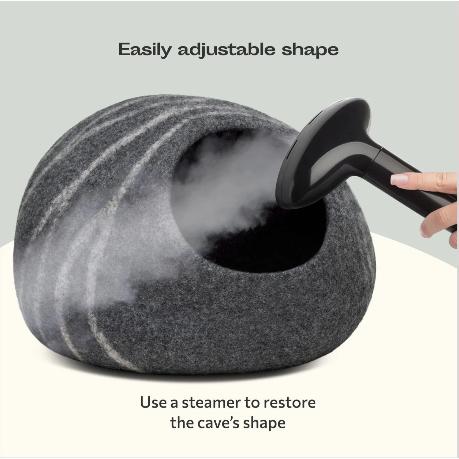 Give your cat the gift of premium comfort with the Meowfia Premium Felt Cave Cat Bed! Handcrafted by Nepalese artisans using 100% New Zealand Merino wool, this unique and innovative design is soft, supple and breathable for year-round comfort that keeps your furry friend cool in the summer and warm in winter for a purr-fect night’s sleep or just a midday catnap. It’s created using a wet-felting technique that molds the wool into a dense fabric with only soap, water and pressure; each bed is made from a single piece of fabric so there are no seams or stitching to burst or fray.