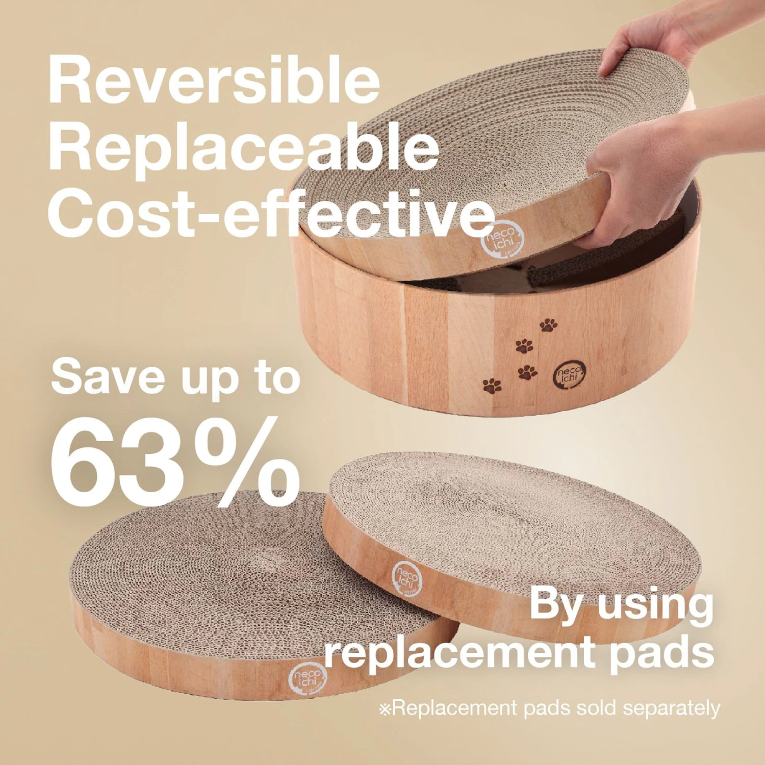 • Designed with a replaceable scratching pad that’s also reversible.