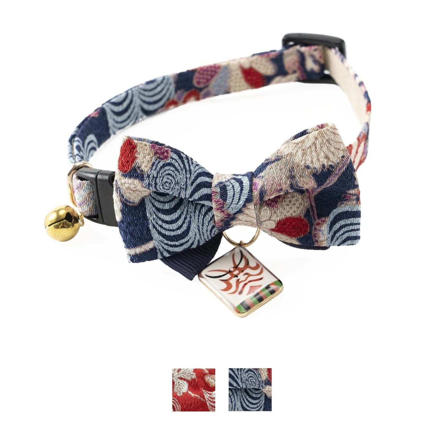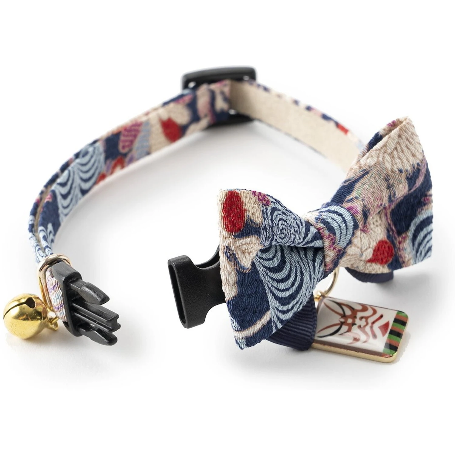 Make your feline friend stand out from the crowd with Necoichi’s Kabuki Charm Bow Tie Cat Collar. This collar is made from chirimen cotton, which is a sturdy fabric used for kimonos. It is soft, yet durable and features unique patterns so your kitty can show off her purr-sonality. This collar is one size fits most and includes a breakaway clip buckle for the safety of your paw-tner. This Necoichi collar also comes with a stylish bow tie and bell, so you always know where your companion is.