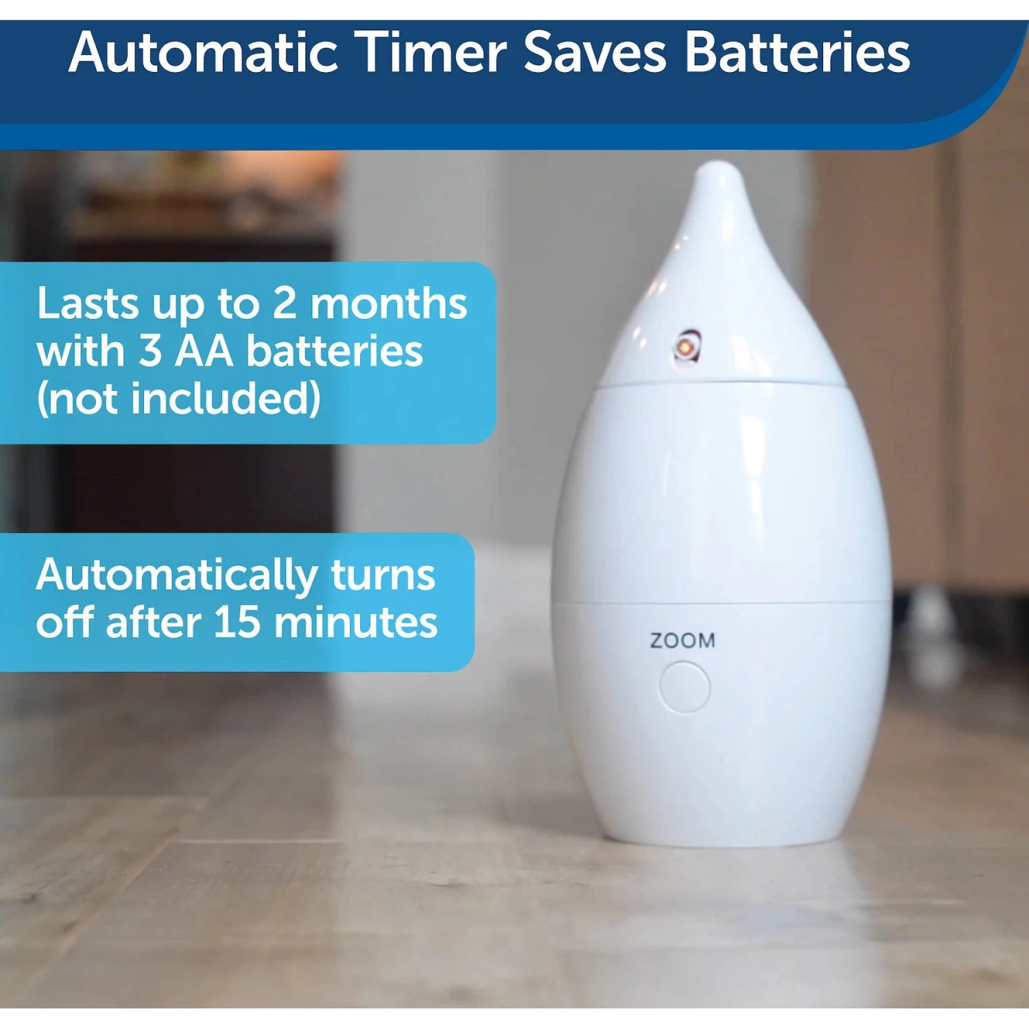 Keep your playful pet entertained with the Zoom rotating laser cat toy from PetSafe. This unique, battery-operated toy delivers boundless fun thanks to the two, automatic lasers at the base. The purr-fect laser for multi-cat households, the Zoom’s pointers rotate 360 degrees around and give your kitties a dynamic game of chase. The lights will dart around, suddenly change direction and even pause occasionally to mimic the unpredictable movements of real, wild prey. And, don’t worry—the Zoom will automatically turn off after 15 minutes of play to keep your cats from getting overwhelmed. When it’s time for more fun, simply press the button on the bottom and let the games begin!