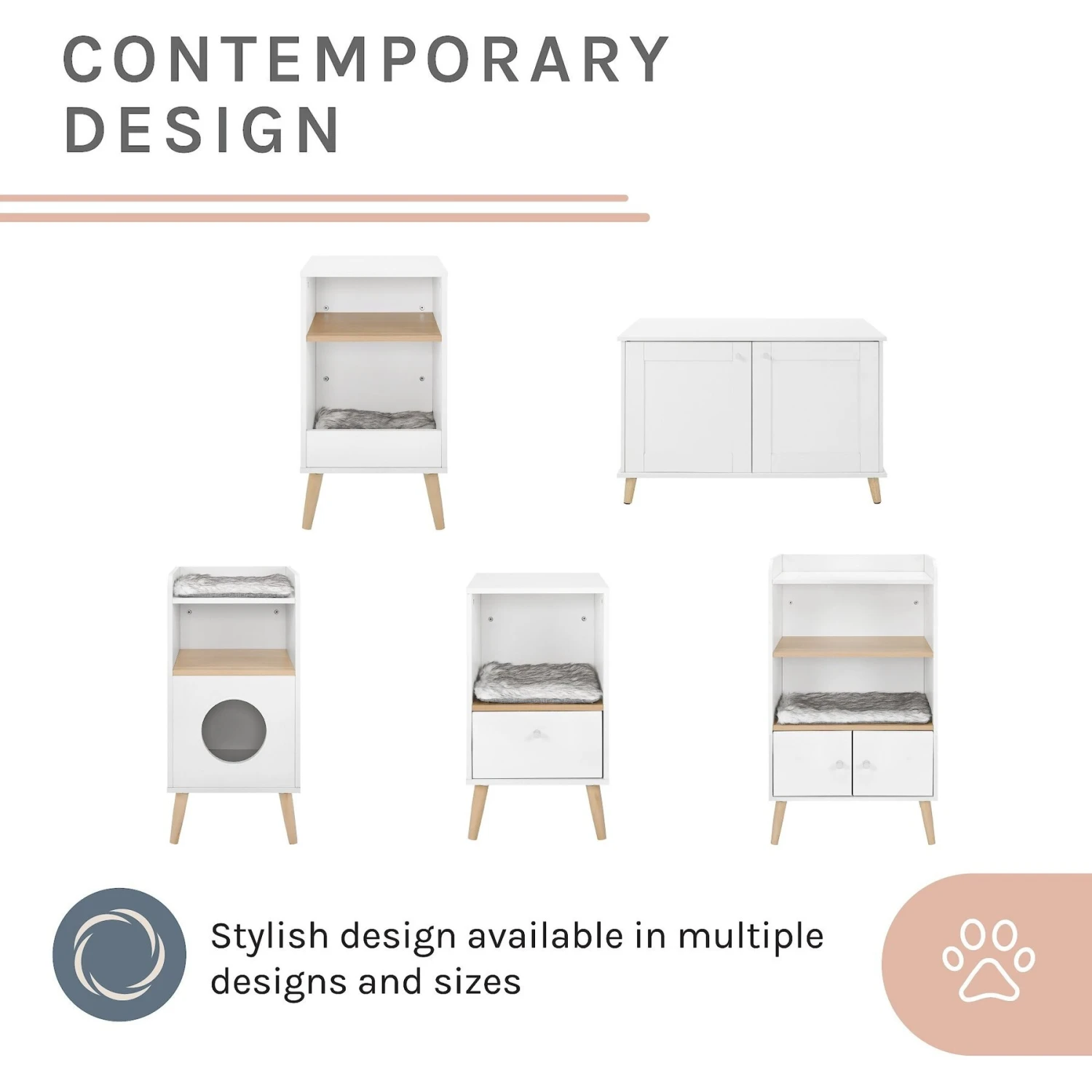 Sam’s Pets Becky 24.5-in Cat Tree End Table is a piece of fur-niture that’s purr-fect for you and your feline friend! The modern style and neutral color palette will fit in beautifully with your home decor and the top will offer plenty of additional storage space. Plus, your cat companion will love relaxing in the circle hide away and stretching out on top. This end table is spacious and easy to clean for your convenience!