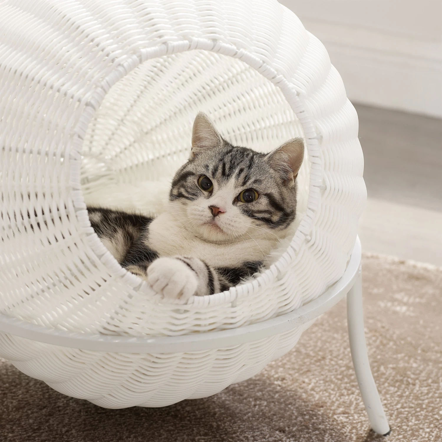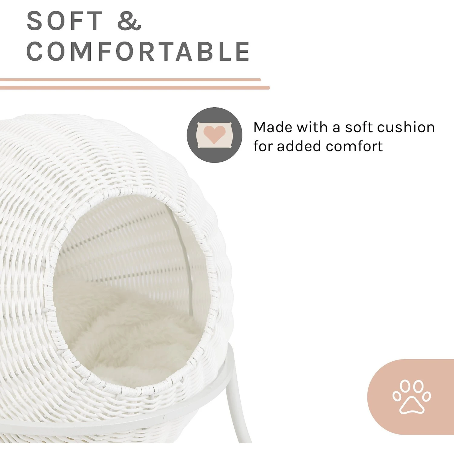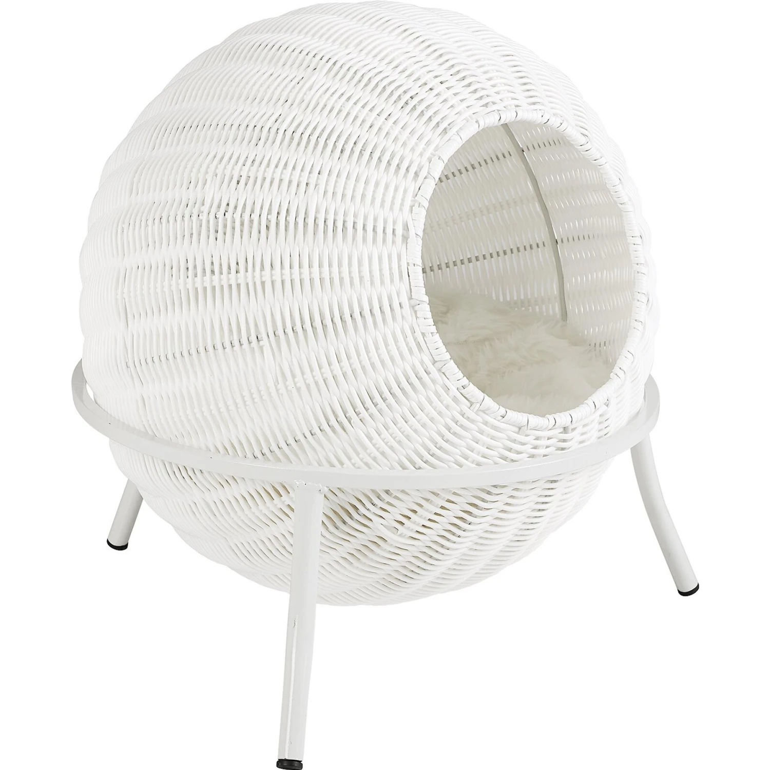 - Rattan-style wicker exterior offers a stylish alternative to traditional cat beds.