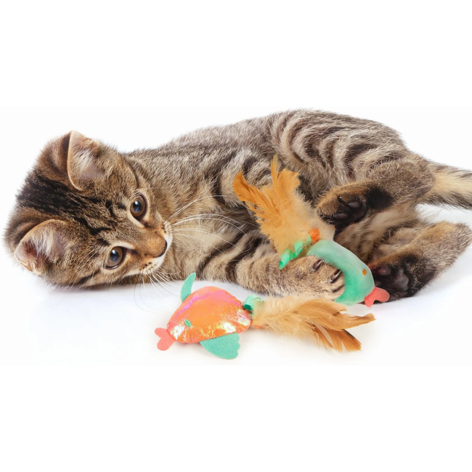 Treat your pal to some fishy fun with SmartyKat Silly Swimmers Plush Catnip Cat Toys. These colorful crinkle toys are purr-fect for swatting, pouncing, chasing or chewing. Multiple textures like soft plush, feathers, ribbons and felt mimic real prey for more satisfying play. Plus, SmartyKat pet toys are designed to meet child safety standards and help keep your kids safe—whether they have two feet or four!