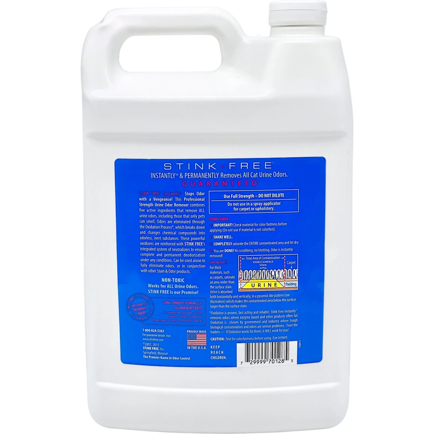 When your kitty decides the world is her litterbox, reach for Stink Free Cat Urine & Odor Remover to get rid of that nasty urine smell. Stink Free uses an oxidative process to break down the chemical compounds in cat pee and render them so inert and odorless, your cat won’t even be able to smell them! A system of odor neutralizers adds an extra step of deodorization to make sure the odor gets all the way obliterated and stays that way. Just saturate the offending area with Stink Free and you’re done—no scrubbing or blotting required!