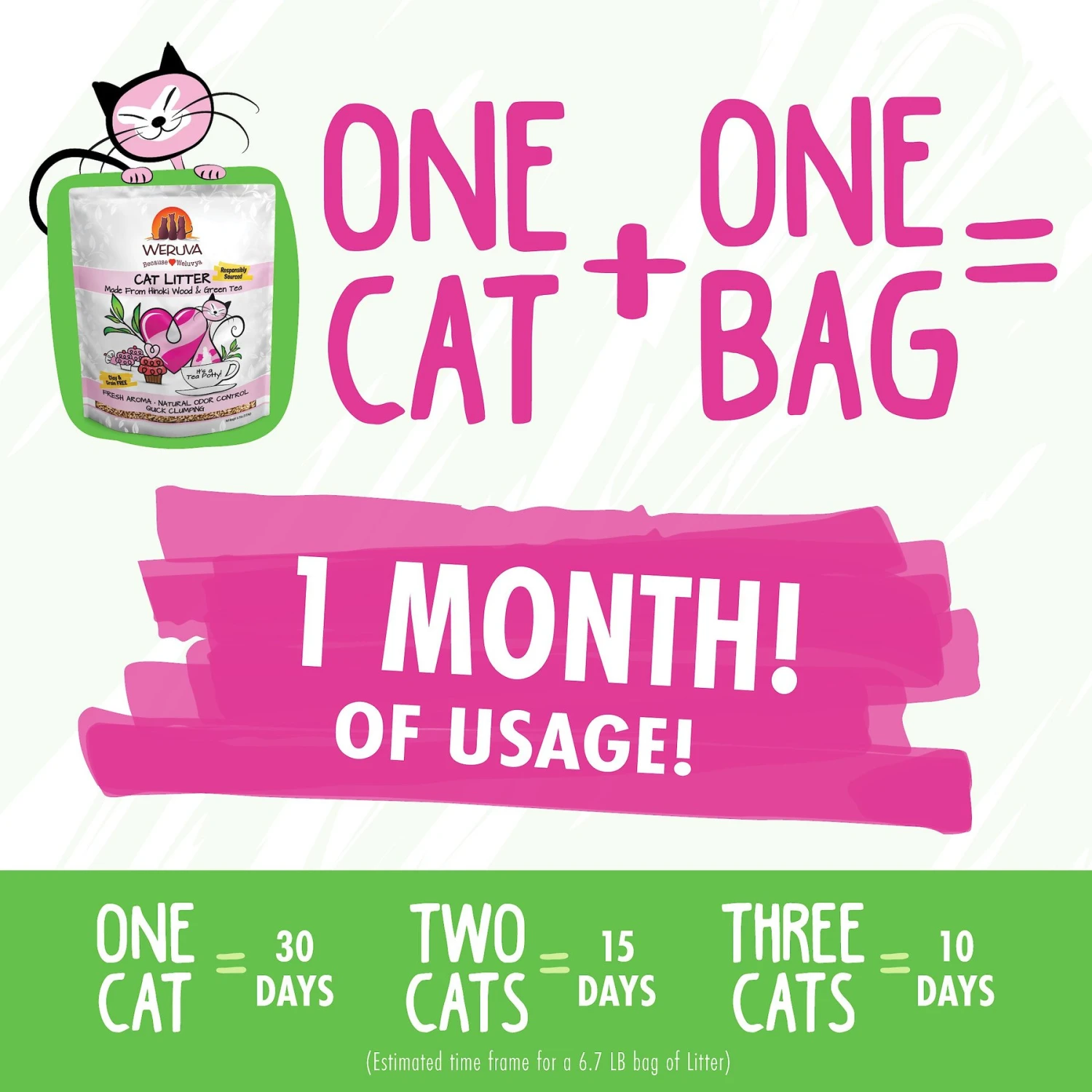 Some cats may adjust to Weruva Hinoki & Green Tea Litter without issue, and some cats will need some time. If you believe your cat may need some time, sprinkle as little as a thin layer atop your current litter or replace as much as a third of your current litter. Once your cat begins to use the litter, you can gradually increase the amount of Weruva litter. And when you feel the time is right, empty the litter box completely and refill with Weruva only.