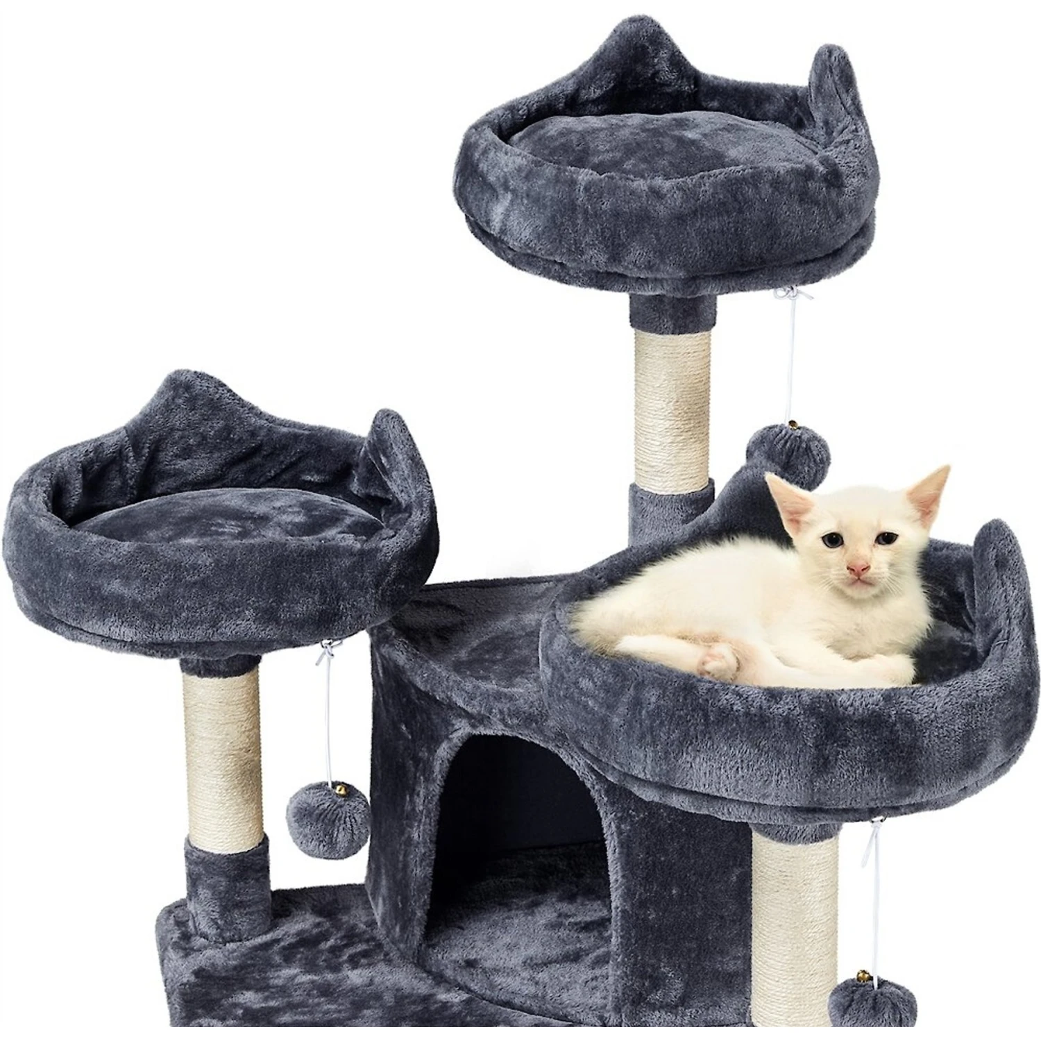 - Several kittens or two to three medium-sized cats can play on this cat tree at once.